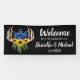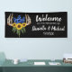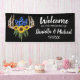 "Willkommen zur Hochzeit von" Banner. Geben Sie einfach Ihre Hochzeitsdetails ein! Schöne rustikale Blumengestelle mit Blumen und Sonnenblumen. *Finden Sie das passende Set in meinem Shop!