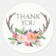 Rustikale Antler mit Pink Bouquet Vielen Dank Runder Aufkleber