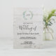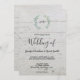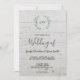 Elegante mit Monogramm botanische Hochzeitseinladung für Frühjahr, Sommer, Herbst oder Winterhochzeit. Grünes Eukalyptus Aquarelldesign auf der Holzkarte aus Stall. Sie können den Text leicht ändern.