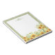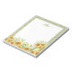 Farbenfrohe, rustikale Aquarellblume mit einem hellgrünen Damast Muster Hintergrund und anpassbarer Namensvorlage. Ein Aquarium mit Sonnenblumen, gelben Wildblumen und blühenden Sonnenblumen bildet am Seitenrand einen dekorativen Garten. Dieses niedliche Notizblock kann mit einem Namen und Monogramm personalisiert werden, was ein besonderes Gartengeschenk mit einer Touch des Landstils macht.
