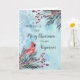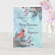 Frohe Weihnachten für Stiefmütterkarte mit winterfarbenem Wasser, Kardinal und nachdenklichem Vers.