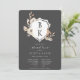 Moderne Probe-Dinner-Einladung zeigt die Bio Schönheit der natürlichen Aquarellblumen und des Monogramm-Wappen.