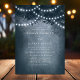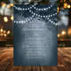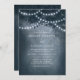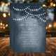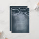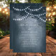 Navy blaue rustikale ätherische Dreamy Tree String Lichter Einladung. Dieses Design zeichnet sich durch einen ätherischen, rustikalen Traumbaum im Wald aus, mit schönen Lichtern, die leuchtend sind und einen Hintergrund mit einem sanften Glühen und einem Traum wie Gefühl. Dieses elegante Walddesign kann mit Ihren eigenen Hochzeitsdetails personalisiert werden. Ideal für eine Hochzeit im Freien.