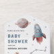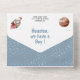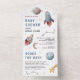 Erleben Sie die moderne Babydusche mit niedlichen Raketen und Planeten mit einer abnehmbaren Reservierungskarte. Fügen Sie einfach Ihre Veranstaltungsdetails zu dieser einfach zu bedienenden Vorlage hinzu, um sie zu einer einmaligen Einladung zu machen.