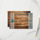 Country Wedding RSVP Cards Diese rustikalen Hochzeitskarten haben einen dunkelbraunen Stallholzhintergrund mit Stacheldrahtländer und einem Hufeisen und Herz auf der einen Seite und einen Bullenhornschädel auf der anderen in aquamarin türkisblau auf einem weißen durchsichtigen Streifen. Die Antwortkarten für Hochzeiten in Holz aus dem Western sind perfekt für eine Hochzeit im Landhausstil, rustikale Hochzeiten, Scheunenhochzeit, Hochzeit von Western auf dem Land, Texas Themenhochzeit oder Cowboy-Hochzeit. Ideal für Brautpaare mit türkisfarbenen und braunen Hochzeitsfarben. Fügen Sie einfach das Antwortdatum Ihrer UAWG ein. Hier ist das passende Set für die Einladung zum Hochzeitsfeiern eines Landes: