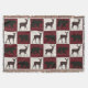 Dieses Quilt besticht durch ein charmantes und rustikales Kabinendesign. Es zeichnet sich durch ein spielerisches Schachbrettmuster aus abwechselnd dunkelroten und cremefarbenen Quadraten aus. Jeder Platz beherbergt eine Silhouette eines Hirsches oder eines Bären und schafft so eine skurrile Waldlandschaft. Die Tiere werden in einem schlichten, aber eleganten Stil der Silhouette dargestellt, der die rustikale Ästhetik noch verstärkt. Die dunkelrote und cremefarbene Farbpalette verleiht dem Ganzen ein Gefühl der Natur und schafft ein warmes und einladendes Ambiente.