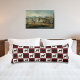 Dieses Quilt besticht durch ein charmantes und rustikales Kabinendesign. Es zeichnet sich durch ein spielerisches Schachbrettmuster aus abwechselnd dunkelroten und cremefarbenen Quadraten aus. Jeder Platz beherbergt eine Silhouette eines Hirsches oder eines Bären und schafft so eine skurrile Waldlandschaft. Die Tiere werden in einem schlichten, aber eleganten Stil der Silhouette dargestellt, der die rustikale Ästhetik noch verstärkt. Die dunkelrote und cremefarbene Farbpalette verleiht dem Ganzen ein Gefühl der Natur und schafft ein warmes und einladendes Ambiente.