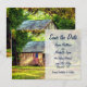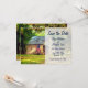 Diese Save the Date angekündigte Hochzeitsfeier besticht durch eine rustikale Scheune mit einer patriotischen amerikanischen Fahne in einer bezaubernden Landschaft aus Holz.