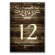 Rustikale Barnholz-Damast-Vintage-Hochzeitskarte Tischnummer
