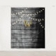 Ein rustikaler schwarzer Holzhintergrund mit hängenden goldenen Saitenleuchten mit passender goldener Monogramm. Ein rustikales, verbranntes Holz mit einer Touch goldener Glam. Passen Sie das Monogramm und den Text an und machen Sie es zu Ihrem eigenen.