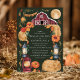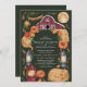 Diese bezaubernde Hochzeitseinladung besticht durch eine rustikale Scheune unter glühendem Vollmond, umgeben von Herbstfloralen, Kürbissen und Vintagen Laternen. Der tiefgrüne Hintergrund und die warmen Erdtöne schaffen eine gemütliche Atmosphäre, die perfekt für eine Hochzeit im Herbst auf dem Lande ist. Dieses Design verbindet wunderbar den Charme eines rustikalen Bauernhofs mit der Eleganz eines Abends und macht es zu einer idealen Wahl für Paare, die die Wärme der Saison Liebe.