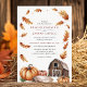 Feiern Sie Ihre Hochzeit im Herbst mit dieser charmanten rustikalen Einladung mit einer gemütlichen Scheune, Kürbissen und einer Kaskade von Herbstblättern auf einem sauberen, cremefarbenen Hintergrund. Die warmen, erdigen Töne und die einfachen, natürlichen Elemente schaffen eine ruhige und einladende Atmosphäre, die perfekt für eine ländliche Feier geeignet ist. Dieses Design spiegelt die Schönheit des Herbstes wider und ist somit eine ideale Wahl für Paare, die ein elegantes und rustikales Thema für ihren besonderen Tag suchen.