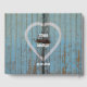 Eine alte rustikale Scheunentür. Die Tür als alte flakblaue Farbe betraute Metallriegel. Ein weiches weißes Herz bildet den Mittelpunkt dieses Hochzeitsdesigns. Das Design hat den Namen der Braut und des Bräutigams und ist ein rett für den Termin Ihrer Hochzeit. Es hat auch den Namen der Braut und des Bräutigams in Pinselstrichbuchstaben. Wenn Sie Hilfe bei der Anpassung dieses Designs wünschen, verwenden Sie bitte, um diesem Designer einen Knopf, der direkt unter diesem Text gefragt ist.