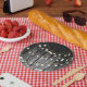 Rustikale Barschschwarz Holz Gold String Lights Pappteller