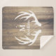 Planken-Hintergrunddruck der rustikalen Scheune hölzerner mit der weißen Rotwildgeweih-Silhouette, die Monogrammbuchstaben und -namen Ihrer Familie im Skript gestaltet.