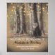 Rustikales Hochzeitsposter mit einem bezaubernden Outdoorwald-Hochzeitsambiente, leuchtenden Streichelleuchten, einem romantischen, geschnitzten Herz am Baumstamm mit Ihren Initialen und Ehedetails.