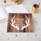 Rustikales Gästebuch mit Silhouetten aus Weißhirsche, die die Initialen Ihres Paares und das Hochzeitsdatum mit einem dunkleren, roten Braunholz-Hintergrund umrahmen.