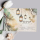 Rustikale Baumrinde Botanische Laternenleuchten Hochzeitskarte RSVP. Schönes elegantes Hochzeitsdesign in Aquarellfarbe mit rustikalen Botanischen Hängeblattern. Dieses maßgeschneiderte, moderne Hochzeitsdesign kann leicht mit Ihren eigenen Hochzeitsdetails personalisiert werden.