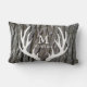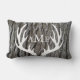 Graue Rinde Hintergrund mit weißer Hirschantler Silhouette und Ihrer Wahl von Monogramm Text auf der Vorder- und Rückseite! Dieses Lumbalkissen ist ein ausgezeichnetes Geschenk oder Akzent für diese gemütliche Zuhause in einer wunderschönen Waldlandschaft!