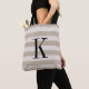 Rustikale Tasche mit breitem Streifen personalisiert mit großen klassischen Monogramm-Buchstaben. Bitte beachten Sie, dass die subtile Leinenstruktur Teil des bedruckten Designs ist und das Produkt nicht aus echtem Leinenstoff besteht. Klicken Sie auf die Schaltfläche "Anpassen", um Ihren eigenen Text hinzuzufügen und ein einzigartiges Design zu erstellen.