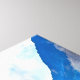 Leinwand Kunstdruck mit einem schönen Foto einer angenehmen und ruhigen Naturlandschaft. Lebhafter grüner Wald im Vordergrund und schattige blaue Berge im Hintergrund. Mit einem traumhaft bewölkten weißen Himmel. Legende und magische Gefühle.
