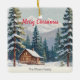 Fügen Sie dem Weihnachtsbaum den rustikalen Landstil mit diesem schönen festlichen Ornament hinzu. Das Design ist eine Winterschneeszene mit Bergen und Kiefern, mit einer gemütlichen Holzhütte am Hang. Mit dem Gruß "Frohe Weihnachten" in der roten Schriftzypografie, kann das Ornament mit Ihrem Namen oder anderen Text unter dem Bild personalisiert werden. Die Rückseite kann auch mit dem eigenen Text personalisiert werden.