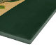 Ein Vintages rustikales Bild; eine kreisförmige Vignette mit Bergen und Schneebäumen in den Ästen, umgeben von einem Blumenmotiv.