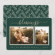 Rustikale Weihnachtskarte mit den Textsegnungen in subtilem goldfarbenem Glitzer und elegantem Drehbuch auf dunkelgrünem Hintergrund. Die Rückseite der Karte hat ein festliches Beeren-Gewirr-Muster. Fügen Sie einfach Ihren Namen und Ihre Lieblings-Fotos zu dieser schönen Weihnachtskarte hinzu und schicken Sie sie an Ihre Familie und Freunde! Exklusiv für Sie entworfen von Happy Dolphin Studio.