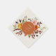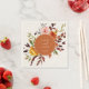 Rustikales Blätterwerk und Blumenrahmen, personalisierte Papierservietten. Moderne Designvorlage liefert Zeilen für Namen und Datum auf gebranntem orangefarbenem Rundrahmen.