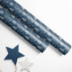 Dieses festliche Papier zeigt eine Reihe von skurrilen, von Hand gezeichnet Weihnachtsbäumen in knusprigen Weiß, Set vor einem reichen marineblauen Hintergrund. Die spielerische Mischung aus Baumdesigns und zarten Schneeflocken schafft eine magische, winterliche Waldlandschaft, die sich sowohl traditionell als auch modern anfühlt.