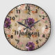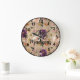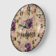 Rustikale Blume aus Lila Holz, rosa Rosen Große Wanduhr