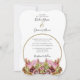 Dieses Design zeichnet sich durch einen rustikalen wilden Blume-Bouquet aus. Ein einfacher goldener Rahmen umkreist den Text, während die Namen der Braut und des Bräutigams oben positioniert sind. Die rustikal rosa Blumenfarben ergänzen das Grün der Blätter. Die goldfarbenen Krawatte schaffen ein rustikales Landwaldgarten-Ambiente. Die goldfarbenen und rosa Streifen bedecken die Rückseite des Designs. Elegantes Hochzeitsinklusivdesign mit modernen Elementen. Es stehen auch passende Hochzeitsstilleriedateien und andere Hochzeitsformate zur Verfügung.