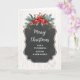 Fröhliche Weihnachten für Cousin und ihre Familienkarte mit rustikalem Landdesign, Vintagem Holzmuster und winterlichem Laub mit Poinsettias.