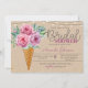 Bridal Duscheinladung mit Eis-Kegel gefüllt mit einem Bouquet von rosafarbenen Blume und grünen Blätter, und rosa Glitzer Punkte.