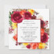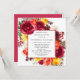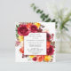Elegante bordeauxfarbene rote Rosen und lebhafte Blume in Gelb, Orange und Rosa schaffen einen wunderschönen Rahmen für die Blume im Herbst. Eine Vielfalt an Grün und Blattwerk verleiht dem Rahmen Herbstcharme.