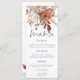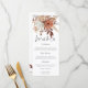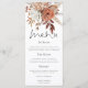 Rustikale Blumen Pampas Gräser Herbst Hochzeit. Eine kombinierte Speisekarte und Danksagung. Herbstfarbene Blumen säumen den oberen Rand, mit einer eleganten Schrift für das Menü auf der Vorderseite und Danke auf der Rückseite und leicht anzupassen an Ihre Anforderungen.