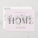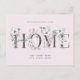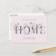 Diese elegante, mit Blumen geschmückte Postkarte bietet hübsche Blume und rustikale Schriften. Auf der Vorderseite ist das Wort "Zuhause" handgeschrieben in kohlegrauer Schrift und mit Blumensträußen geschmückt. Der zarte rosa Hintergrund ist auf Wunsch editierbar. Fügen Sie Ihre Namen und neue Adresse an die Vorderseite, dann auf der Rückseite schreiben Sie eine benutzerdefinierte Nachricht und/oder häusliche Einladung an Empfänger.