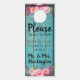 Diese hübsche rustikale Blütenzunge Don Not Disturb Floral Door Hanger hat einen blauen Holzhintergrund mit einem trendigen schwarzen Drehbuch dekoriert mit einer Rose Aquarell Blumenstrauß mit grünem Blattwerk am oberen und unteren Rand des Designs. Auf der Vorderseite steht das Schild "Bitte nicht stören, wir bleibe spät mit dem neuen Mr. und Mrs. (Ihr Name hier)." Auf der Rückseite lautet der Text "Glückwünsche an die frisch verheirateten, Mr. and Mrs. (Ihr Name hier). Passen Sie den Schriftart und die Farbe des Textes Ihren Wünschen an.
