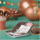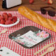 Eine rustikale rosa, blumengedeckte Papiertüte, die perfekt für die Gäste der Babydusche geeignet ist.