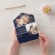 Feiern Sie Ihren besonderen Tag mit dieser rustikalen blumenblauen Hochzeitseinladung. Mit üppigen Aquarellfarben, warmen pfirsichfarbenen Akzenten und elegantem Grün lädt diese Öko-freundliche Einladung zum Herbst oder zum Verweilen bei Hochzeitsfeiern im Garten ein. Das komfortable All-in-One-Format macht keinen Umschlag erforderlich - einfach falten, Siegel und senden. Passen Sie Ihre Fotos, Texte und UAWG an, um eine schöne und nachhaltige Feier zu feiern.