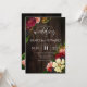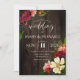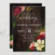 Erzählen Sie Ihren besonderen Tag mit dieser bezaubernden rustikalen Hochzeitseinladung. Mit einem dunklen Holzhintergrund, der mit lebhaften Blumenarrangements und üppiger Vegetation geschmückt ist, eignet sich das Hotel hervorragend für eine charmante und elegante Hochzeitsfeier. Passen Sie Ihre individuellen Hochzeitsdetails an.