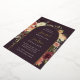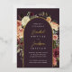 Elegante blumengeschmückte Hochzeitsfeiern oder Herbst- oder Winterhochzeiten zeigen Ihre Details, die von einem Bogen aus Aquarellfarben, Mumm und Grün in rustikalen Herbstfarben gerahmt sind, darunter Pfirsich, Elfenbein, Rot, Bordeaux und Grün, mit goldenem Blattgold und goldkalligraphischem Schriftzeichen auf einem lila Hintergrund. Ein modernes und elegantes Design für rustikale, schicke Hochzeiten im Herbst oder Winter.