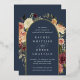 Elegante blumengeschmückte Hochzeitsfeiern oder Herbst- oder Winterhochzeiten zeigen Ihre Details, gerahmt von einem Bogen von Aquarellfarben, Mumm und Grün in rustikalen Herbstfarben wie Pfirsich, Elfenbein, Rot, Bordeaux und Grün, mit goldenen Folie. Ein modernes und elegantes Design für rustikale, schicke Hochzeiten im Herbst oder Winter.