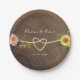 Feiern Sie Ihre rustikale Hochzeit mit dieser hübschen Papiertafel mit einem Imitat aus Holz, einem romantischen Seilherz und Aquarellblumen wie Blüten, Grünpflanzen und einer hellen Sonnenblume. Personalisiert mit den Namen des Paares und dem Hochzeitsdatum, ist dieses elegante und dennoch erdige Design perfekt für Stallhochzeiten, Empfang im Freien oder Landfeste. Ideal für Vorspeisen, Desserttische oder Bridal-Buffets.