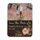 Rustikales Holz und rot-rosa Blume Hochzeit Save The Date Einladung Magnet mit individuellem Foto des Paares.