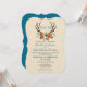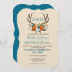 Diese rustikale Hochzeitseinladung im bohobischen Stil präsentiert wunderschöne Antlers mit einem Blumenstrauß in Orange, Dunkelorange, Türkis und Grün. Dieses Design ist perfekt für jede Jahreszeit, ob Frühjahr, Sommer oder Hochzeiten im Herbst! Design von Künstler ©Tina Hesskew of Fishing Hunting Life.