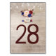 Burgund, Marineblau und Blume mit blauen und blauen Flecken Jar rustikale Tischnummer Karten