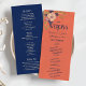 Fügen Sie Ihrer Hochzeit eine Touch rustikaler Eleganz hinzu mit unserem schicken Aquarellblumen-Hochzeitsprogramm. Dieses Design mit einer schönen Mischung aus pfirsichblauen und marineblauen Farbtönen präsentiert hübsche böhmische Blume in rosa Tönen, ergänzt durch eine einfache, moderne Kalligraphie. Ideal für Paare, die ein romantisches, rustikales und künstlerisches Ambiente für ihren großen Tag suchen.