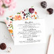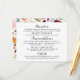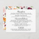 Hochzeitsausweise beinhalten Empfang, Unterkünfte für zwei Hotels und Informationen zur Hochzeitswebsite. Die Rückseite der Karte zeichnet sich durch ein Blumenmuster von wunderschönen Aquarellfarben aus, darunter Rose im Sommer und Herbst, Dahlien, Blume und Grünpflanzen in einer prächtigen Herbstpalette aus bordeauxrot, goldgelb, pfirsichorange, rot-weiß und grün.