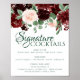 Ausgeklügeltes Blumengarten "Signature Cocktails" Getränkekarte Empfang, Party oder Duschsignatur mit bordeauxrot und rot rosa handbemalten Kopfrandrand mit marineblauen Akzenten Blume, die mit botanischem Lorbeer und dunkelrot geschmückt sind. Aus der Kollektion "Boho Bloom" besteht dieses Layout aus reichen Bohemischen Wildblumen mit strahlenden Blüten und Eukalyptusblättern. Für andere Farben oder passende Produkte, besuchen Sie bitte den JustFharryn Zazzle Store, oder kontaktieren Sie den Designer, c/o Fharryn@yahoo.com Alle Rechte vorbehalten. #bohochic #zazzlemade